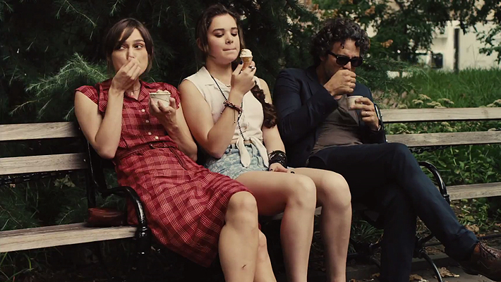 Begin Again is the story of “Greta” (Kiera Knightley), “Dave Kohl” (Adam Levine) and “Dan Mulligan” (Mark Ruffalo). Greta and Dave have come to New York City because a record label has signed Dave. He refers to Greta as his partner, and they have written music together for some time. Greta is also a singer. The label provides everything they need, including an apartment and for Dave, someone who tempts him to stray. This brings their romance to a bad ending.