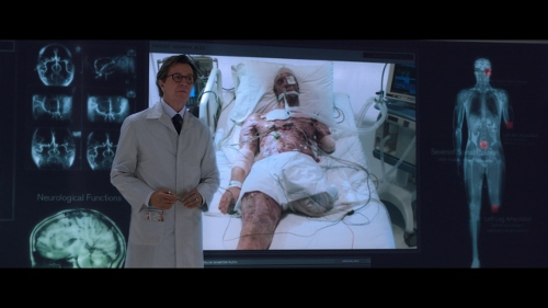 In Detroit, police officer “Alex Murphy” (Kinnaman) is working to build a case against a crime lord named “Antoine Vallon” (Garrow). On orders from Vallon, a bomb is placed on Murphy’s car and when it explodes he is nearly killed. This leads to him becoming the test subject in an experiment conceived by Omnicorp scientist “Dr. Dennett Norton” (Oldman) that would combine man and robot, as a selling point to the American public.