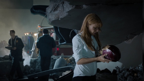 At the film’s outset, Stark is narrating a flashback to New Year’s Eve, 1999 where he says something all began. He was in Switzerland, and had a one night stand with a pretty, extremely intelligent botanist named “Maya Hansen” (Hall). She wanted his help to resolve her DNA sequencing which would allow the body to become totally self-healing. At this point, there’s a ‘minor glitch’ in her process that causes things receiving the sequencing to sometimes explode, giving off tremendous heat. Tony’s not interested. He also blows off another scientist who was trying to start a think tank. “Aldrich Killian” spent a long time waiting on the roof of the hotel for Stark to show, but he never does.
