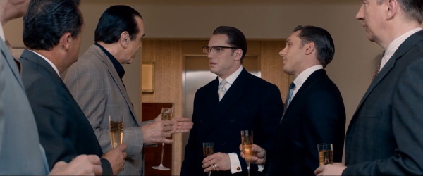 Many actors have portrayed twins in the past. Sometimes for humor as done twice by Jean-Claude Van-Damme and by Jackie Chan in martial-arts movies. Sometimes in truly awful fashion as Lindasy Lohan, Adam Sandler and Eddie Murphy demonstrated. In fact, Adam Sandler won Worst Actor and Worst Actress Razzies for his twin roles in Jack and Jill. Occasionally we see one actor portraying twins brilliantly as done by Leonardo DiCaprio, Christian Bale and Nicolas Cage. Tom Hardy’s work here compares favorably with the best of those. The nuances he creates in differentiating between the two Kray twins is simply astonishing. He is ably aided by superb work from Emily Browning and the rest of the cast.