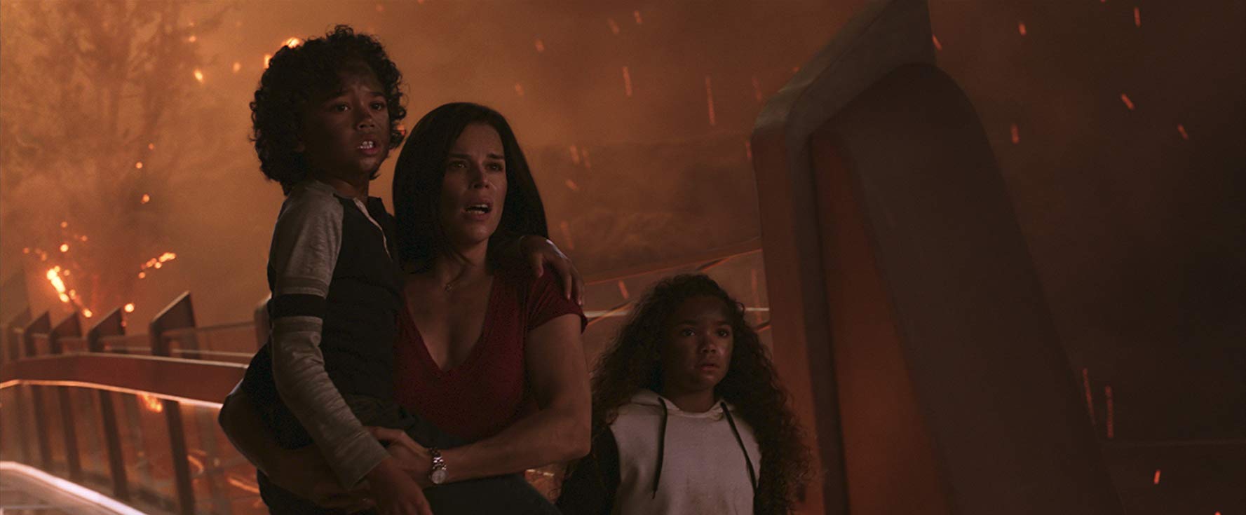 Fast forward to the present and Will has a cutting edge prosthetic leg, a wife “Sarah Sawyer” (Neve Campbell – “Closing the Ring). She’s a Navy trauma surgeon who did three tours in Afghanistan. They have two kids, “Georgia” (McKenna Roberts) and “Henry” (Noah Cottrell) and it should be noted that Henry suffers from asthma. They are in Hong Kong with their parents because Will is there working. He’s been hired to assess the security and protection systems of a newly constructed skyscraper. It is 3,500 feet tall and a true wonder in many ways. It’s builder and penthouse occupant, “Zhao Long Ji” (Chin Han – Independence Day: Resurgence) hired Will to provide the final analysis/appraisal of the building that will convince the insurance company to underwrite occupancy of the building’s upper half. There is an insurance company representative present when Will gives his report. Will is given a tablet that is biometrically coded to his face, in order to do the last portion of the appraisal; visit the off-site control center where the building’s security and protection systems are managed from.