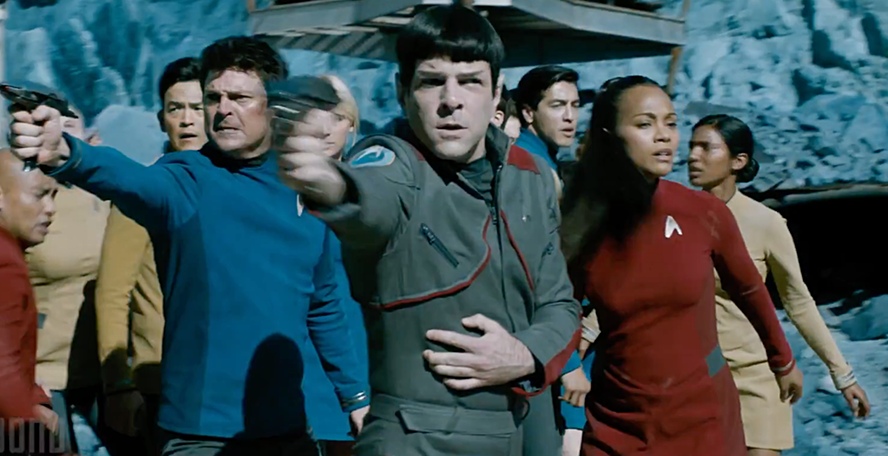There are elements from the TV versions of Star Trek and while they allow criticism of the movie as not entirely original, they give it a familiar feel that fans of the series should enjoy. Director Justin Lin’s extraordinary skill at action, as shown off in his entries in the Fast and the Furious films is on display here and he rocks the battle scenes in this movie. As the late James Doohan noted when he decried the lack of an Oscar nomination for Ricardo Montalban’s performance in Star Trek II: The Wrath of Khan, this type of film doesn’t generate acting award nominations outside of sci-fi specific types of awards. That there aren’t any award-worth performances here, even though Karl Urban is terrific isn’t a knock on the movie. It’s merely an acknowledgement that in this instance, the movie is the star.