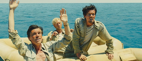 Louis Zamperini enlisted in 1941 and became a bombardier on a B-24 Liberator. Known as the “Flying Coffin” by many who served aboard them, B-24s had design flaws that made it much more likely to be damaged in combat. He and a full crew were flying a mission in a patchwork plane when it was forced to ditch in the middle of the Pacific Ocean. Only Zamperini and two others, Russell “Phil” Phillips (Gleeson) and Francis “Mac” McNamara (Wittrock) survived and managed to get into a raft. After 47 days, Zamperini and Phil were taken prisoner by a Japanese warship and Zamperini wound up in POW camp near Tokyo.