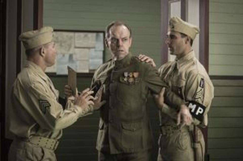 Problems arise when Doss arrives at Fort Jackson for basic training. He informs his drill instructor, “Sergeant Howell” (Vince Vaughn, portraying a composite character) that he will not handle a weapon. Doing so would go against his Seventh-Day Adventist beliefs. His company commander, Captain Jack Glover (Sam Worthington) wants him out of the Army. Howell manages to turn most of the other members of the platoon against Doss, as they are convinced he is merely a coward. Glover’s desire to drum Doss out of the Army nearly comes to pass as Doss is brought to court-martial but thanks to a timely intervention, he is allowed to go with his unit to Okinawa.