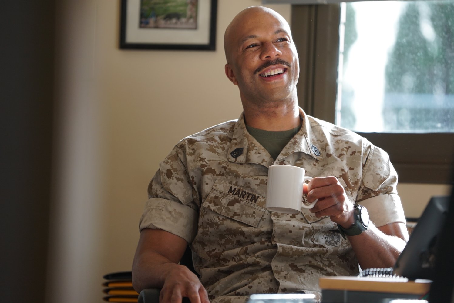 After the obligatory basic training sequence where the drill instructors do a poor job of channeling “Gunnery Sergeant Hartmann” from Full Metal Jacket, Megan finds herself stationed in California at Camp Pendleton. There she does something dumb and winds up being banished to the K-9 training unit on post for a week of dog doo duty (among other things). “Gunny Martin” (Common – LUV) runs the facility and when Megan shows an interest in becoming a dog handler, he tells her she will probably never meet the high standards required to begin handler training.