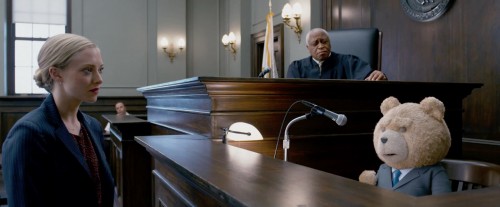 John and Ted decide they need a lawyer and they wind up in the office of “Samantha Leslie Jackson” (Seyfried). She’s just passed the bar and is working at a relative’s law firm. She files suit to have Ted declared a person based on the fact he is sentient. Meanwhile “Donny” (Ribisi), who stole and attempted to kill Ted in the original film, goes to the president of the toy company he works for with an idea to take possession of Ted after John and Ted lose their lawsuit, dissect him and use what they learn to make a Ted for every child.